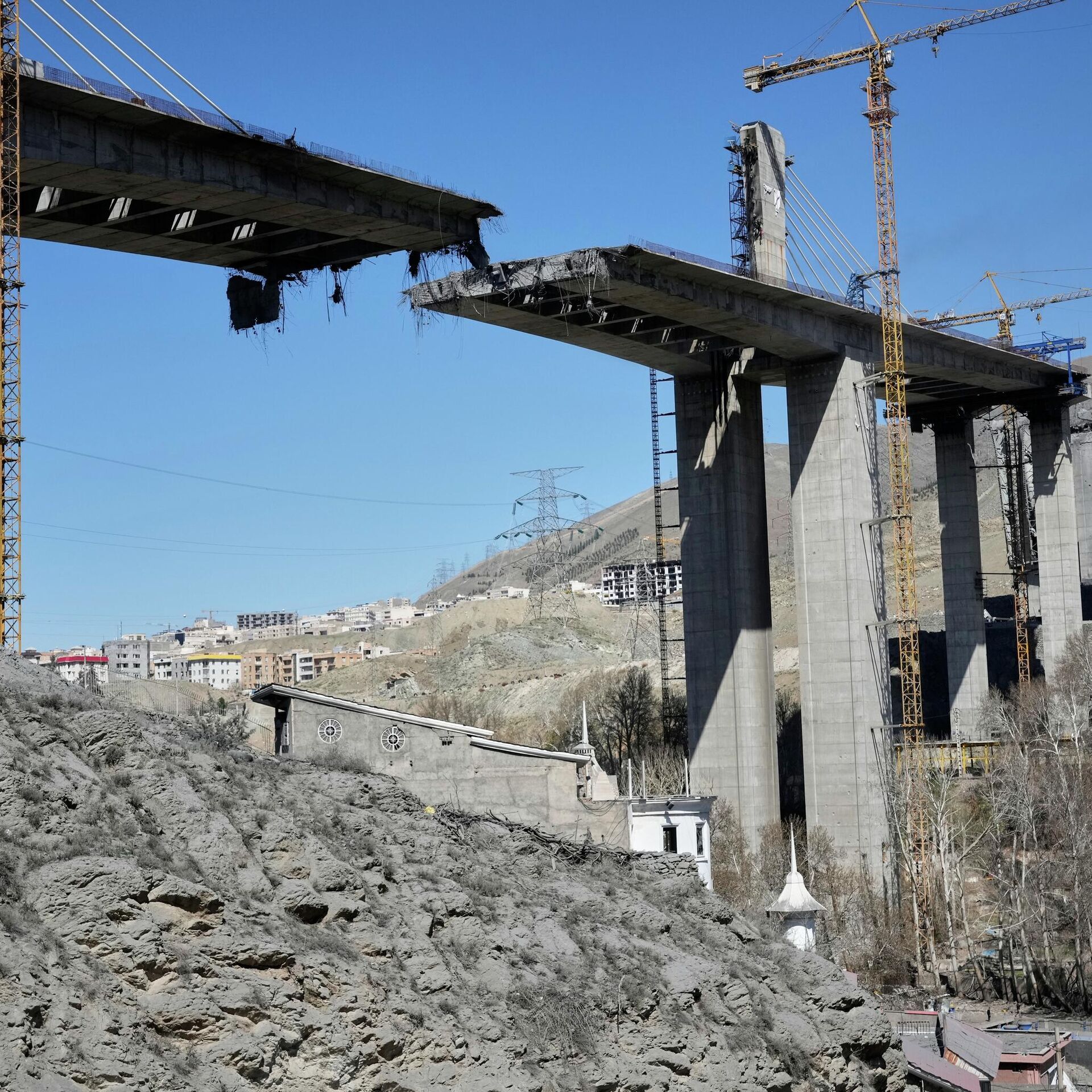 A newly constructed bridge struck by US airstrikes Thursday is seen in Karaj, west of Tehran, Iran, Friday, April 3, 2026 - Sputnik India, 1920, 07.04.2026